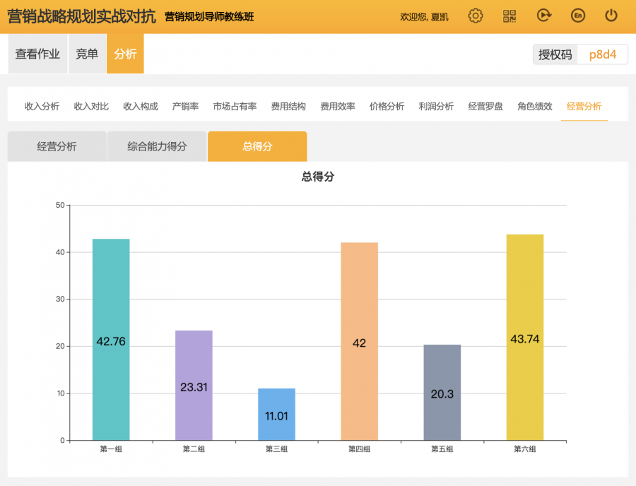两天一夜的课程高度浓缩精华,内容丰富详实,课堂氛围活跃,学员参与度极高。30多位学员分成六组,每组为独立的公司,由营销总监、渠道经理、市场经理、销售经理、交付经理、财务经理6个角色组成,学员们通过真实对抗,在沙盘教学、情境演练、电子系统评价等工具和方法的辅助教学下体会到了营销的奥秘与乐趣,逐步掌握了企业真实营销的流程和市场营销战略规划的步骤,明确了市场竞争战略的要点。