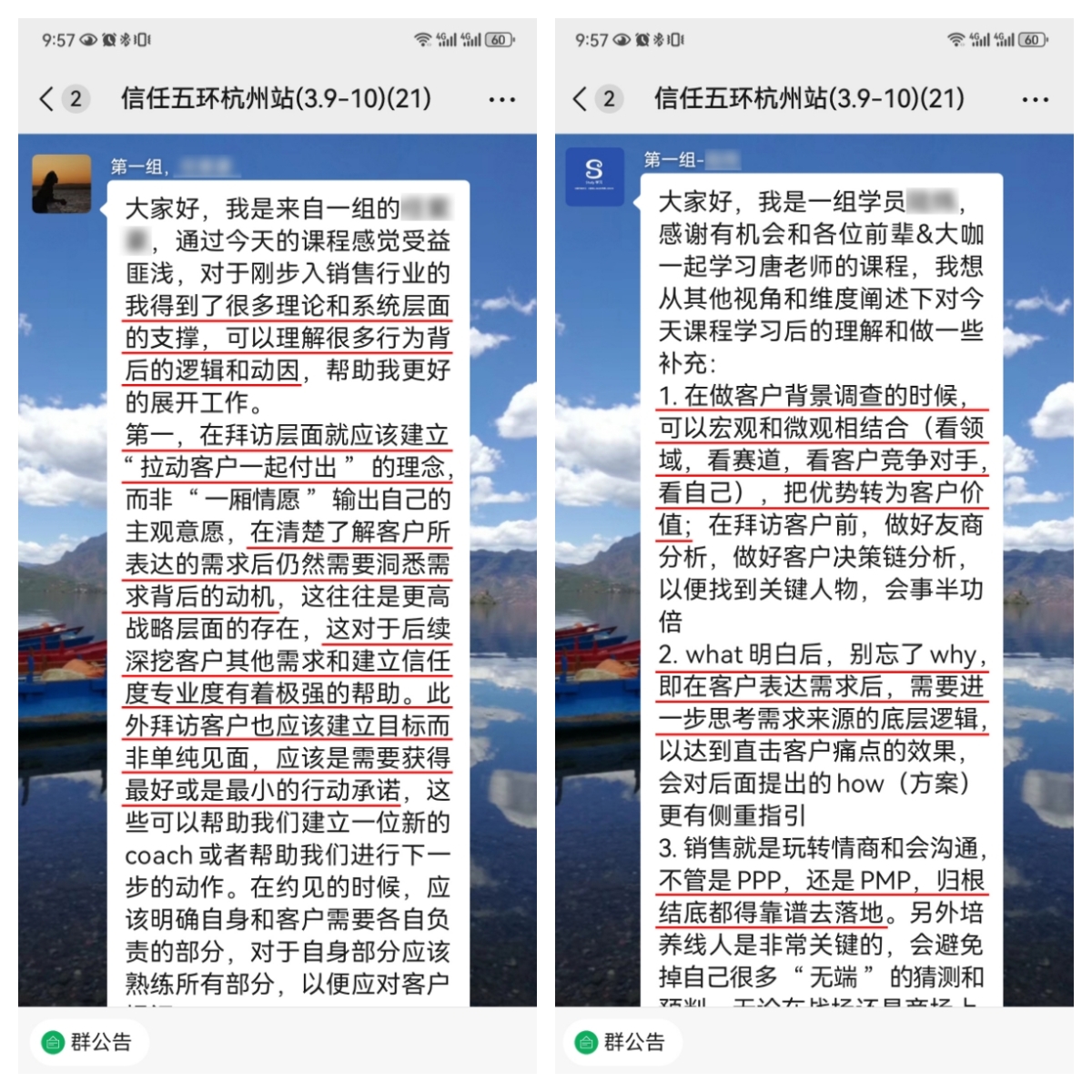 杭州站的首期公开班已经圆满结束,学员们不仅收获了理论知识,更通过实战演练和互动学习,将课程内容转化为了实际的销售技能。课程结束后,学员们纷纷表示,这不仅是一次学习的机会,更是一次深刻的信任体验。《信任五环》课程不仅提升了他们的销售技巧,更重要的是,它改变了他们对销售本质的理解,让他们认识到,销售的核心在于建立和维护信任。