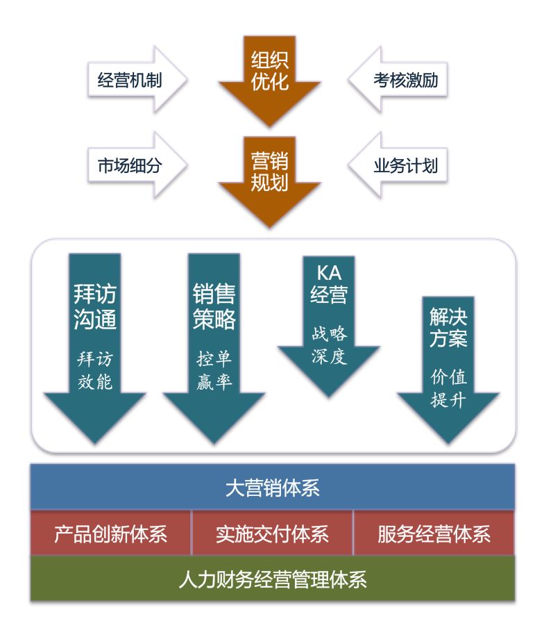 由此,以“提升人均单产”、“构建营销核心竞争力”为目标,通过构建企业“组织规划、销售赢单、客户经营”营销体系,实现战略转型与绩效提升的【数字化赋能】,将让销售罗盘为客户提供“敢于直面业绩结果”的服务。